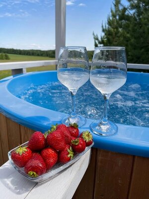 Купель оснащена гидромассажем и подсветкой; находится на высоком подиуме с незабываемым видом на Рачейский бор. Продолжительность сеанса — 2 часа.