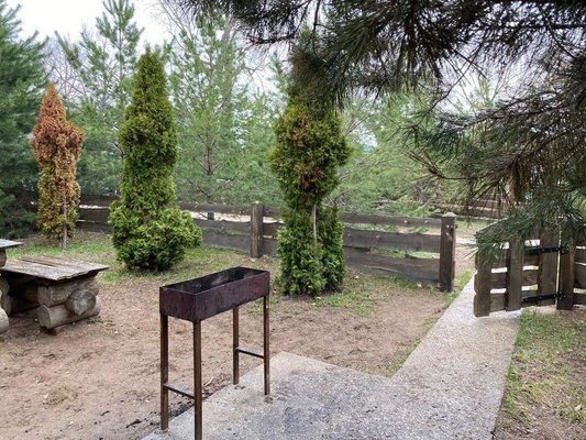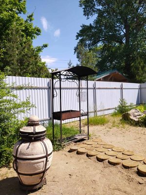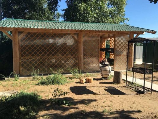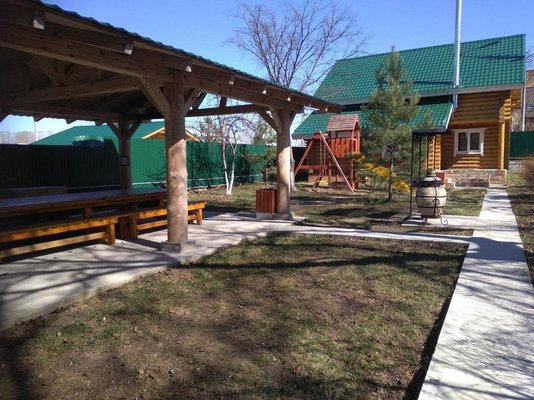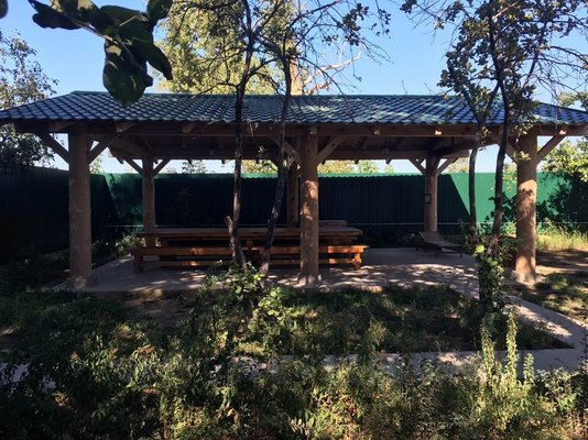 Около коттеджей большие беседки, рассчитанные на 20 человек, с освещением, розеткой, массивным деревянным столом и лавками, разделочным столом.