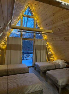 База отдыха «Река и Лес» предлагает круглогодичный отдых в уютных A-frame домиках, расположенных в живописном лесу недалеко от Кривого озера. Каждый из 30 домиков оборудован холодильником, микроволновой печью и собственной ванной комнатой с душем. К услугам гостей — баня с горячей купелью, зоны для барбекю и костра, создающие идеальную атмосферу для спокойного отдыха на природе, с семьей или друзьями.