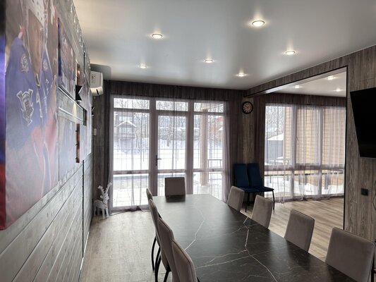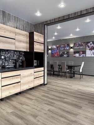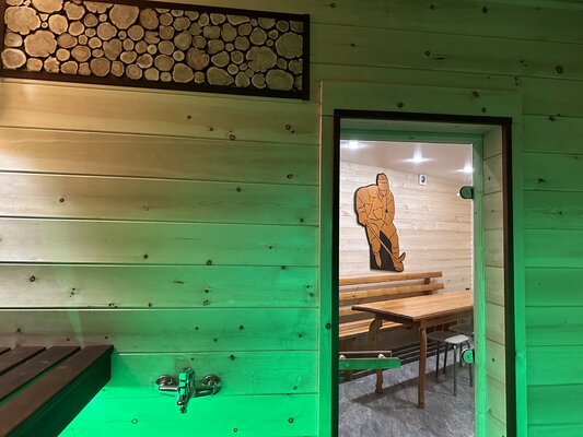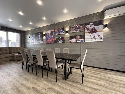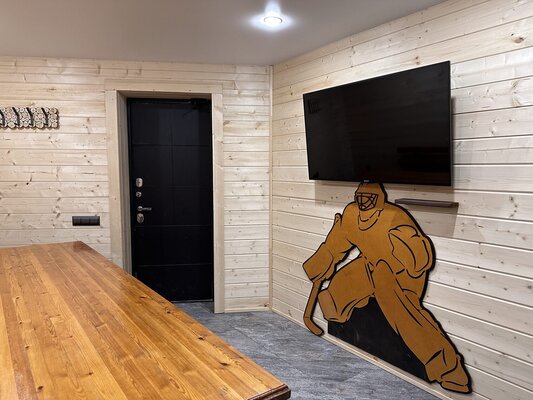 Баня — идеальное место не только для спа процедур, но и для просмотра жарких матчей в дружной компании. Пока одни расслабляются в парилке, остальные могут посидеть за большим столом и подключиться к ТВ с wi-fi, места хватит для всех!