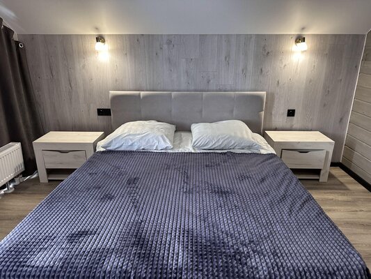 База отдыха представлена комфортабельными барнхаусами с 4 двуспальными кроватями, раскладными диванами и отдельной ванной комнатой. Там есть все для удобства: телевизор, Wi-Fi, игровая приставка, караоке, теплые полы и система отопления для комфортного отдыха в любое время года.