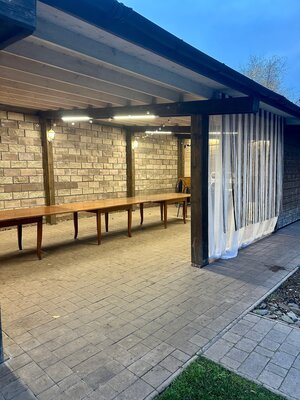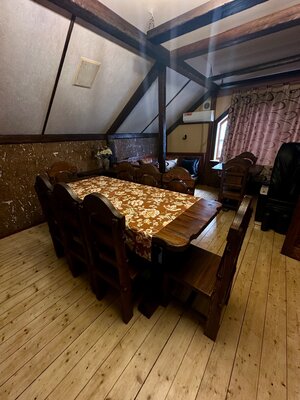 Большая деревянная беседка на 60 человек, а также профессиональная мангальная зона. Беседка предназначена для проведения банкетов, свадьбы или выпускного вечера.