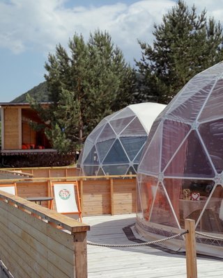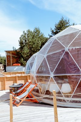 Глэмпинг «Лисички-сестрички» предлагает прекрасные места для мероприятий и ретритов. Открытая терраса с живописным видом на горы и уютный тёплый зал, площадью восемьдесят метров, создадут незабываемую атмосферу. Также доступна небольшая беседка для шести–восьми человек, а для вашего удобства можно арендовать музыкальное оборудование, проектор и экран.