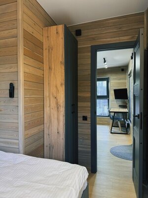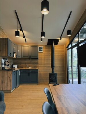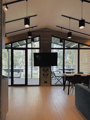 В бане есть зал с кухней, телевизором, холодильником и всем необходимым. Парная с дровяной печью и можжевеловым панно создаст особую атмосферу. Отдельная купель дополнит Ваше релаксационное пространство.
