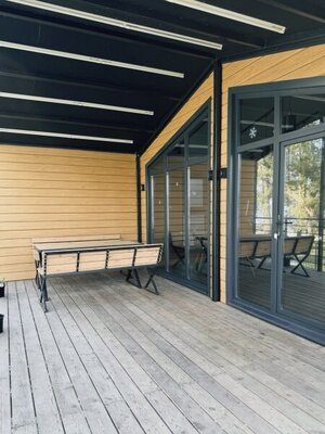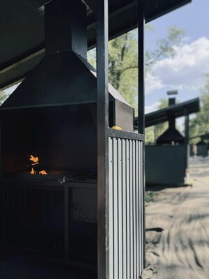 Каждый дом имеет собственную мангальную зону и комплект шампуров для приготовления ароматного шашлыка. Дополнительно можно приобрести уголь и решетку.