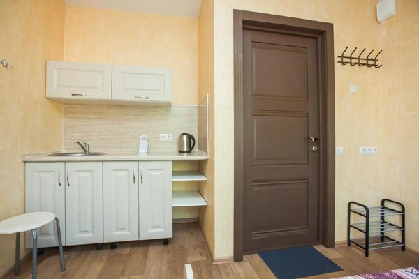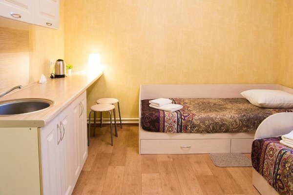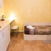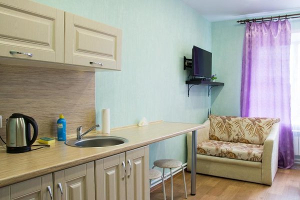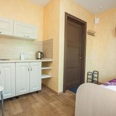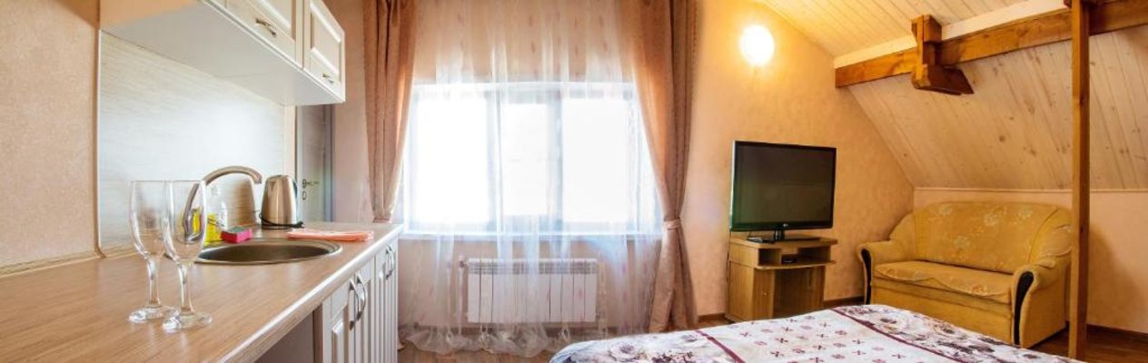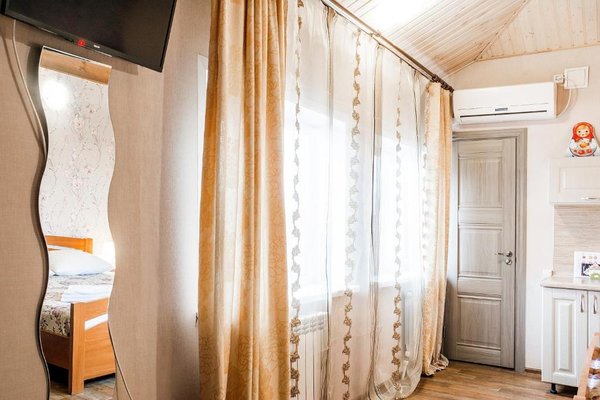 Гостиница расположена в тихом уголке в центре города Тольятти. Прекрасная транспортная доступность для автомобилей и общественного транспорта. Гостевой дом предоставляет бесплатную парковку. Каждый номер сделан по формату квартиры-студии и укомплектован мини-кухней.