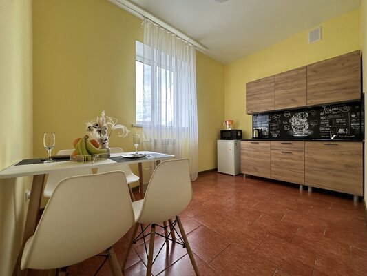 Каждый номер создан для вашего комфортного пребывания. Однокомнатные апартаменты выполнены в современном, практичном дизайне и оснащены двуспальной кроватью, раскладным диваном, просторной ванной комнатой, телевизором и полностью оборудованной кухней (плита, холодильник, чайник, микроволновая печь, фильтр для воды). Для больших компаний предусмотрены двухкомнатные номера с отдельной спальней и гостиной.