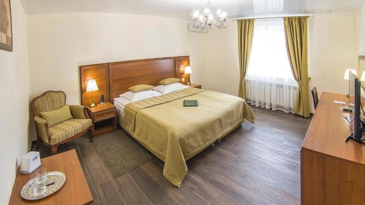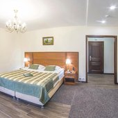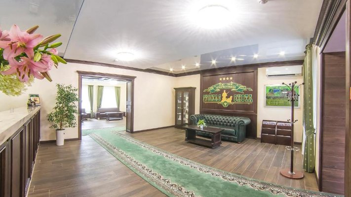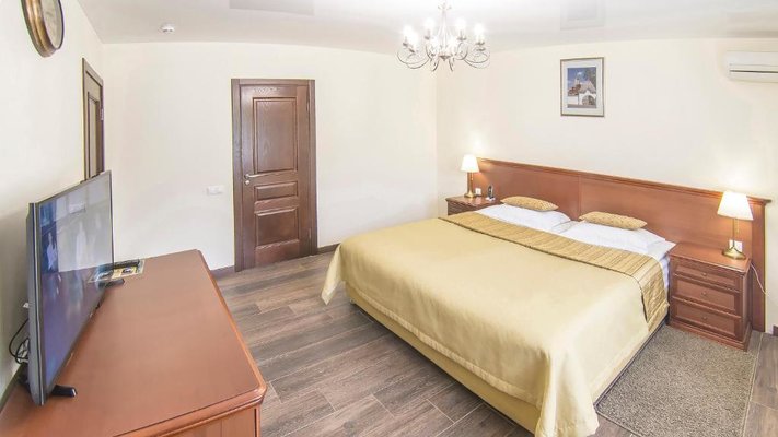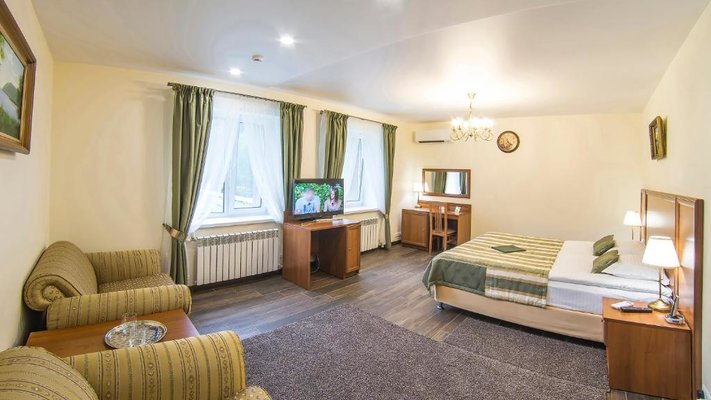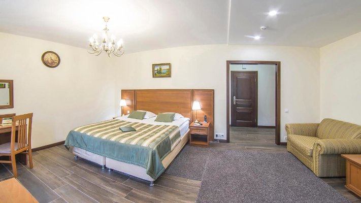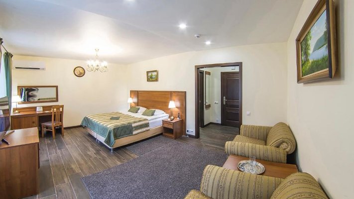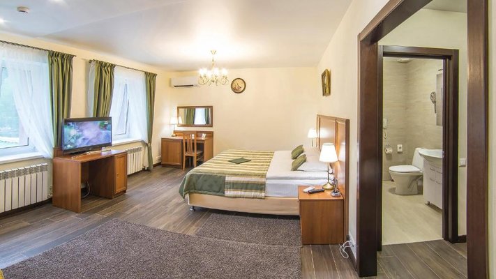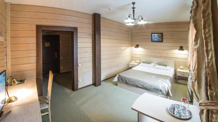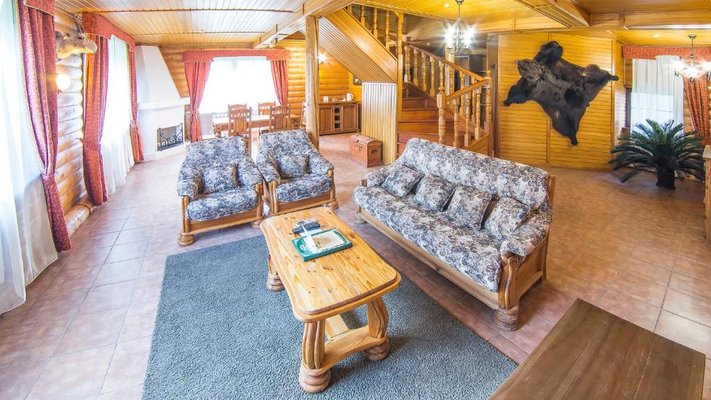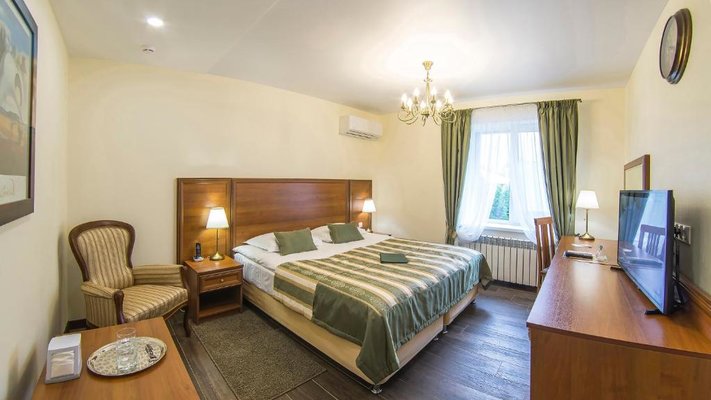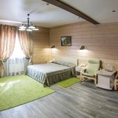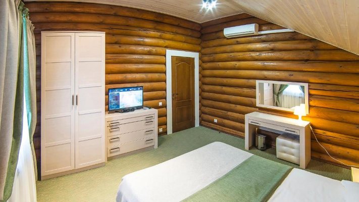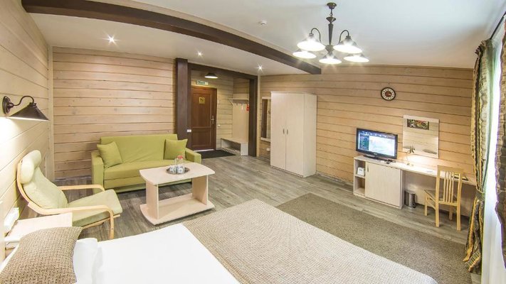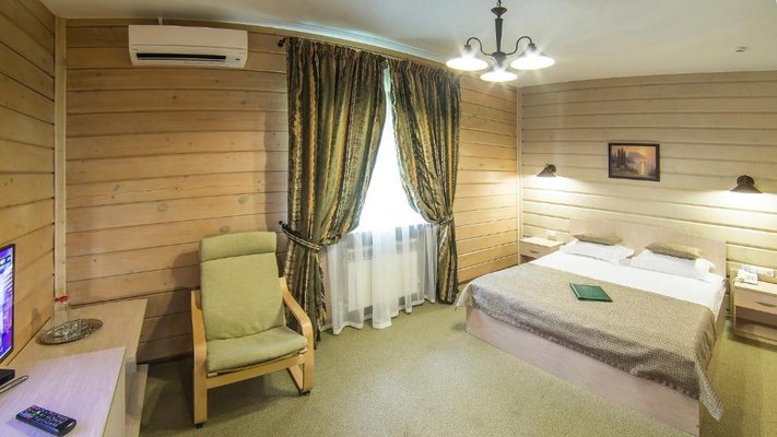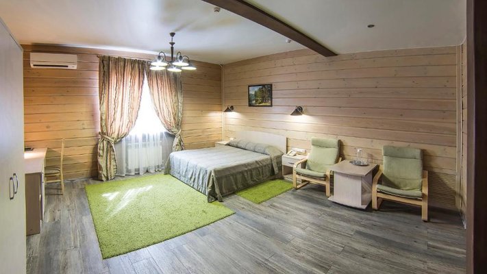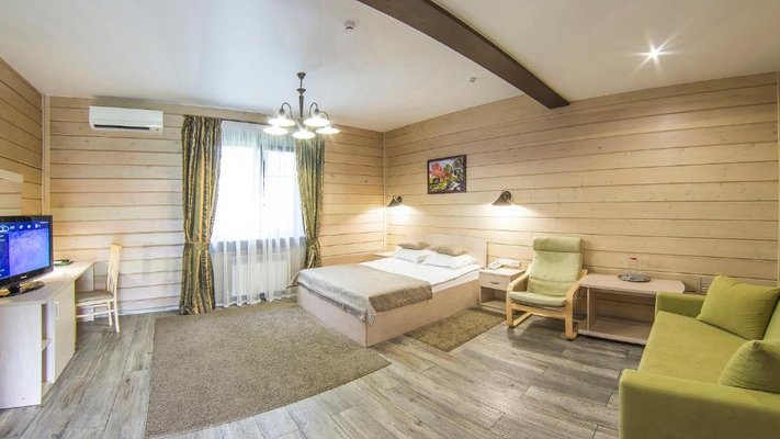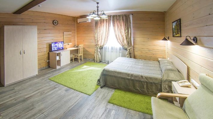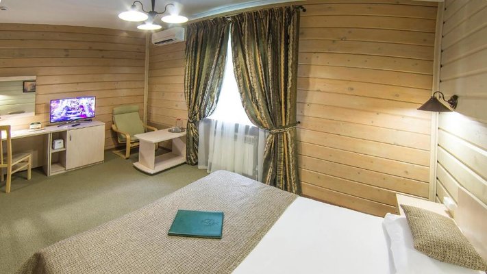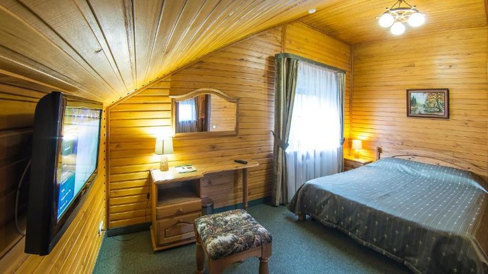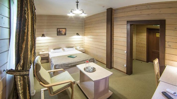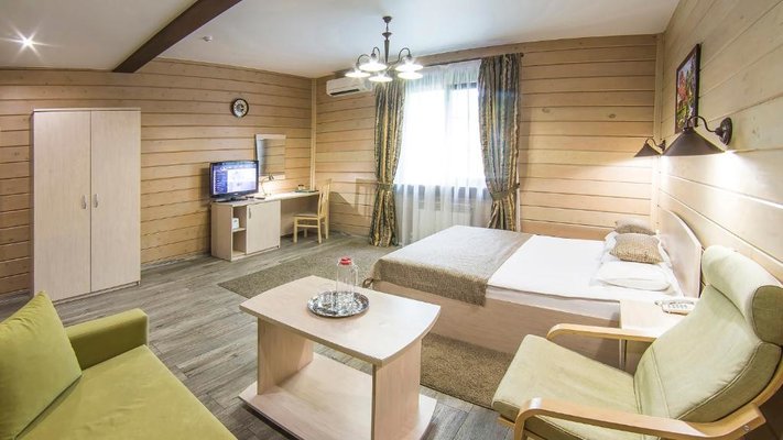 Отель позволяет разместить до 200 человек. Есть варианты размещения в гостинице в номерах категории «Стандарт», «Джуниор Сюит», «Люкс» или в отдельных двухэтажных коттеджах и одноэтажных бунгало, выполненных в эко-стиле с элементами кантри. К услугам гостей: охота, рыбалка, катание на лошадях, увлекательные пешие прогулки, зоопарк, бильярд, теннис, волейбол, баскетбол, футбол, тир и многое другое.