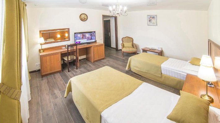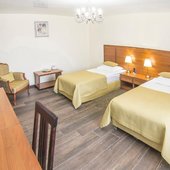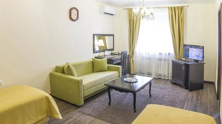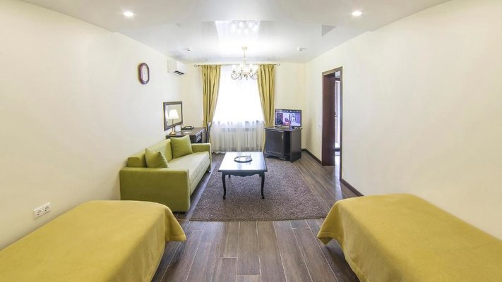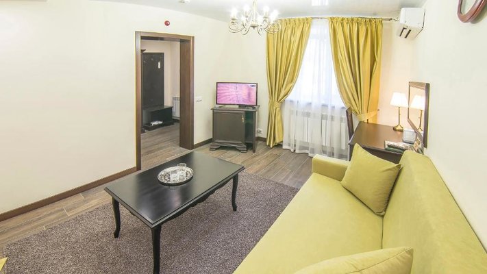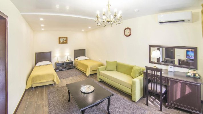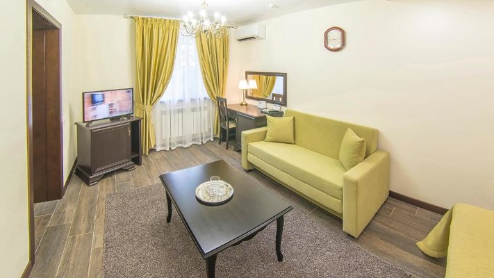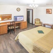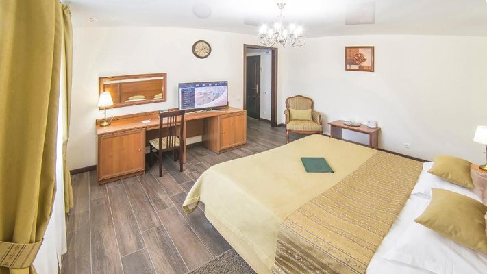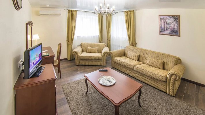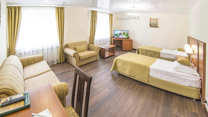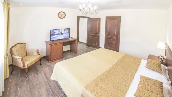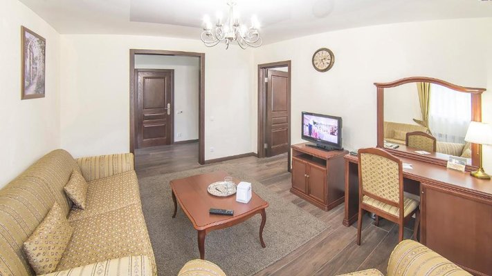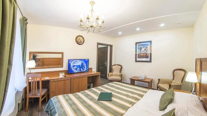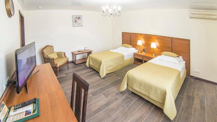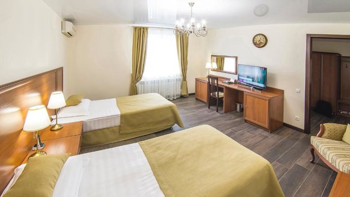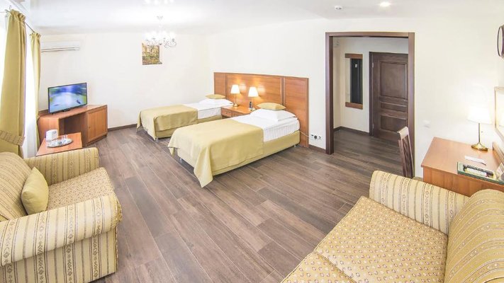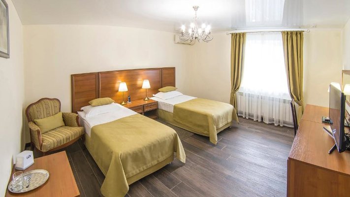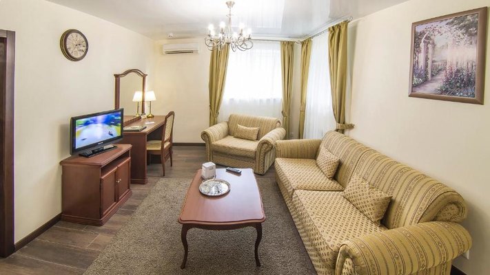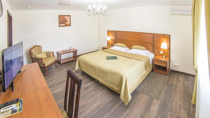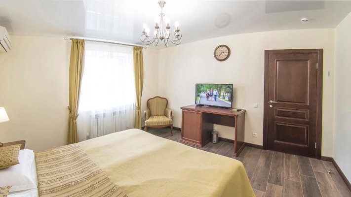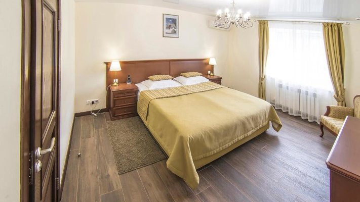 Отель позволяет разместить до 200 человек. Есть варианты размещения в гостинице в номерах категории «Стандарт», «Джуниор Сюит», «Люкс» или в отдельных двухэтажных коттеджах и одноэтажных бунгало, выполненных в эко-стиле с элементами кантри. К услугам гостей: охота, рыбалка, катание на лошадях, увлекательные пешие прогулки, зоопарк, бильярд, теннис, волейбол, баскетбол, футбол, тир и многое другое.