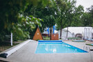Детская чаша бассейна с удобным входом в воду расположена рядом со взрослой.