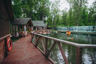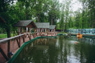 Он расположен вокруг специального пруда, в котором водятся отборные карпы.