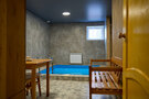 На первом этаже бассейн, две душевые, парная и зона отдыха. На втором этаже гостиная зона и зона отдыха.