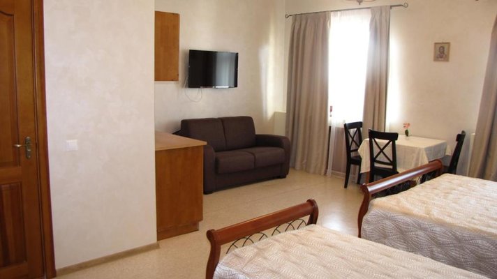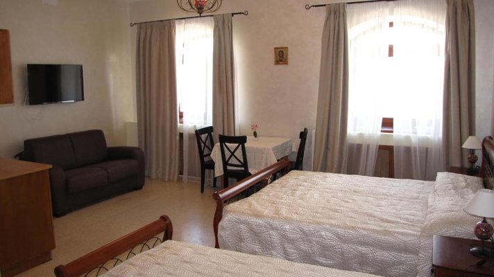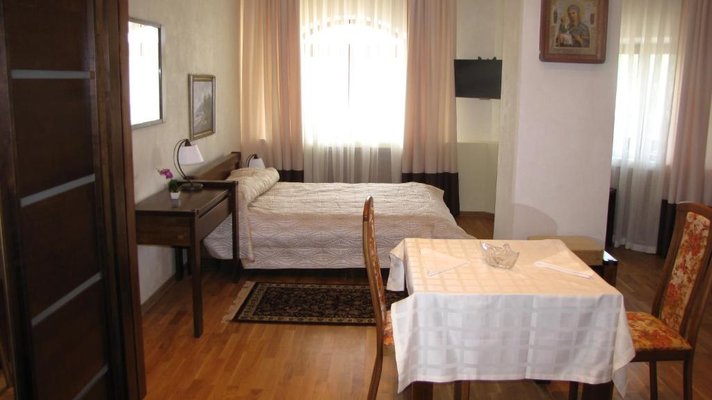 Гостиница «Монастырская» работает при монастыре. Размещение в гостинице и питание в монастырской трапезной - за фиксированное пожертвование. На третьем этаже гостиницы расположены апартаменты с собственным холом, кожаной мебелью и большим телевизором.