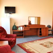 Отель занимает одноэтажный корпус и предлагает 15 номеров. Все комнаты укомплектованы необходимой мебелью, индивидуальным санузлом с душем и туалетными принадлежностями, телевизором, холодильником и кондиционером. В номерах повышенной комфортности дополнительно предоставляются халаты.