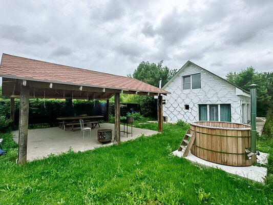 На территории Хуторка Озерного новый аттракцион - Аквабеседка 2 метра (Банный чан Фурако) из лиственницы очень комфортная.