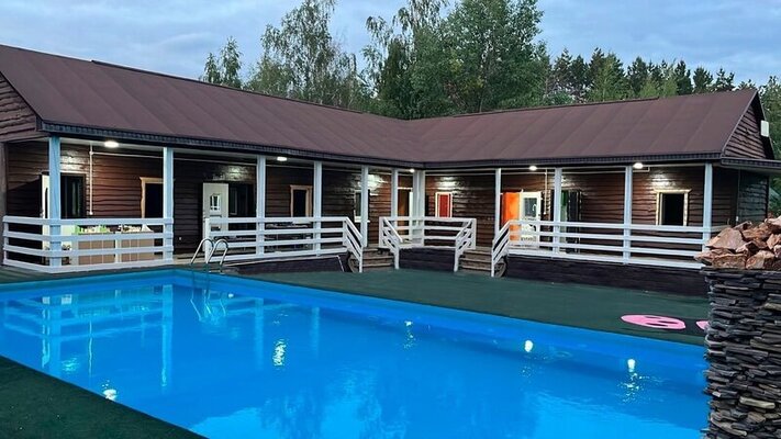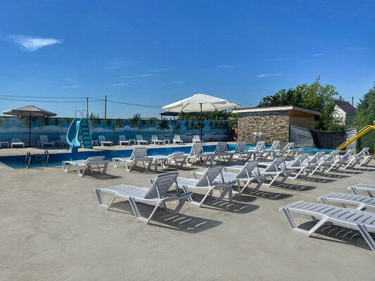 На территории расположен круглогодичный бассейн с горкой и зоной отдыха по периметру.