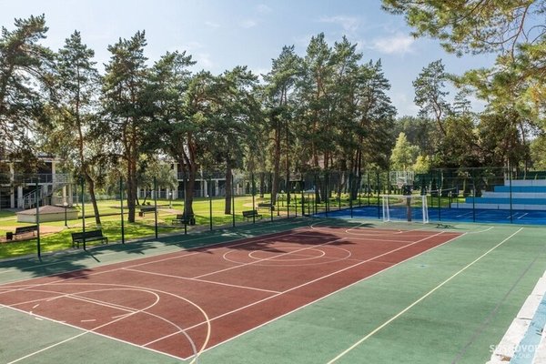 - спорткомплекс. площадки для футбола, волейбола, баскетбола, бадминтона, теннисный корт – более 1000 м²