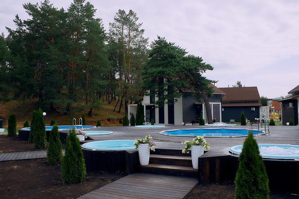 - 5 джакузи с функцией гидро и аэромассажа общей площадью около 20 квадратных метров (от 38 до 42 градусов по Цельсию)