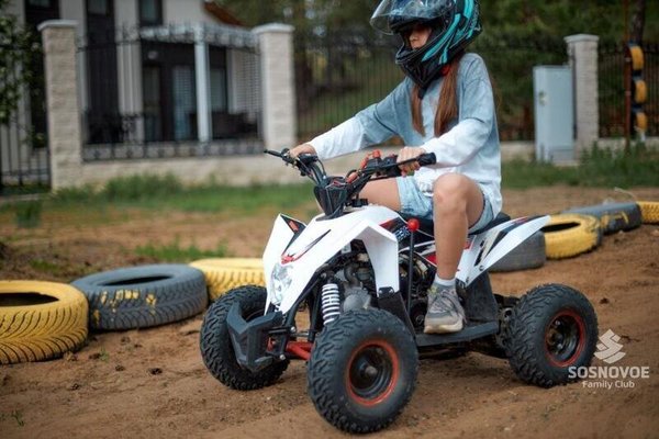 Для детей от 10 лет доступно 3 бензиновых детских квадроцикла. Оборудована безопасная закрытая трасса.