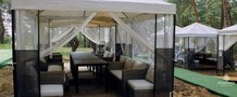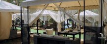 Для желающих вырваться из городской суеты на денёк идеально подойдет лаунж-зона. Это уютный шатер с диваном и креслами из ротанга, обитыми мягкими подушками.