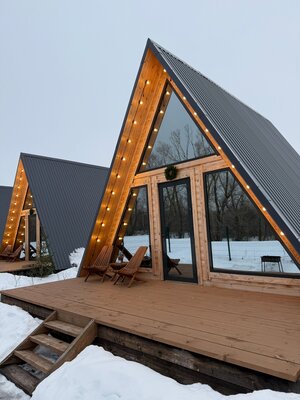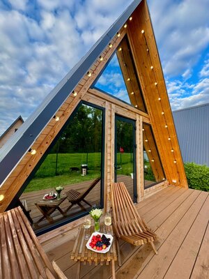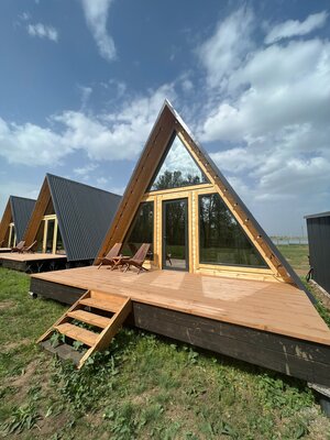 В селе Кривая Лука Самарской области, всего в 40 минутах езды от Самары, расположилась база отдыха Luka village на берегу реки Большой Кинель. Это прекрасное место предлагает гостям размещение в комфортабельных 4-х местных домиках A-frame, откуда открывается живописный вид на лес и реку.