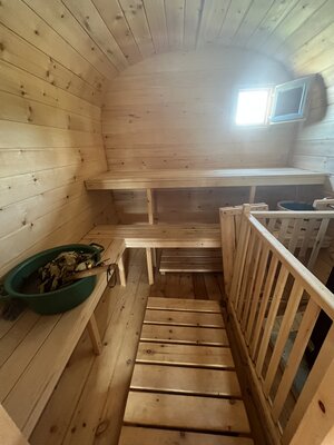 Ароматная баня, выполненная из сибирского кедра, с большой террасой для комфортного отдыха.