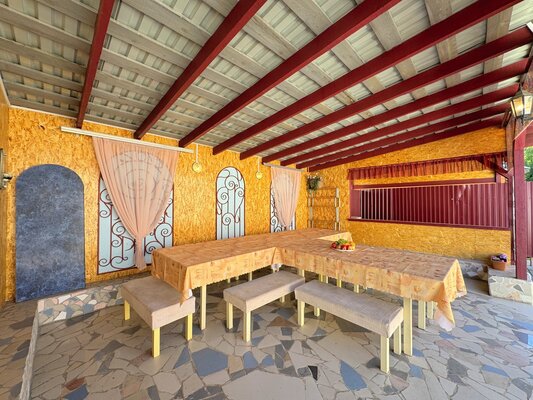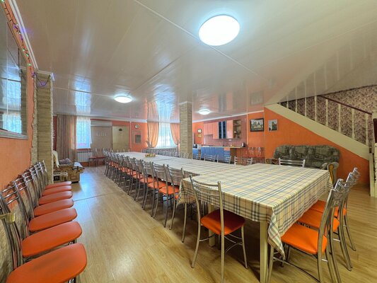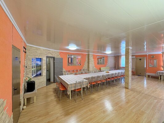 В коттедже есть банкетный зал площадью 90 м² и вместимостью до 60 гостей.