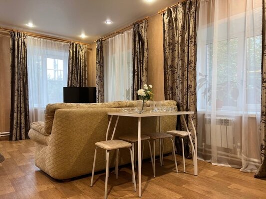 «Матрешка» — это двухэтажное здание с 10 уютными номерами. Каждый номер оснащен мини-кухней с посудой, телевизором и современной ванной комнатой. К вашим услугам на первом этаже: стиральная машина, холодильник, гладильные принадлежности, кулер, микроволновая печь и детский стульчик. На территории – мангал, зона барбекю, баня-бочка, парковка и детская площадка. Бесплатный Wi-Fi обеспечит связь с миром. «Матрешка» – идеальный выбор для тех, кто ценит тихий отдых и домашнее гостеприимство.