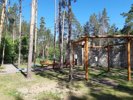 Отдельная площадка «Крепость» со столами и лавочками.