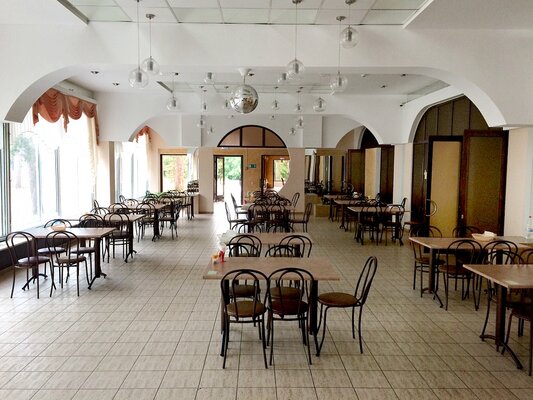 Столовая рассчитана на 150 мест, обслуживание официантами.