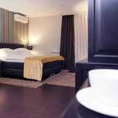 В меню ресторана отеля представлены блюда русской и европейской кухни. Завтраки организованы по системе «шведский стол». Любители активного отдыха могут воспользоваться услугами тренажерного зала и сауны.