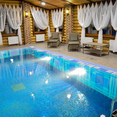 Бассейн площадью 200 кв.м оборудован противотоком, имитирующим настоящий морской прибой, а также теплым гейзером и водопадом.
