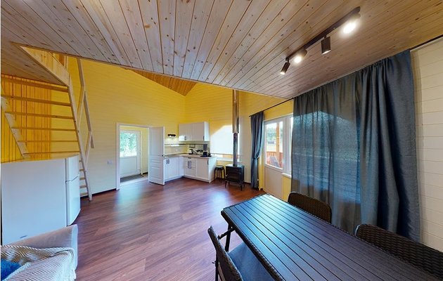 Для проживания доступны уютные оборудованные дома, в каждом из которых своя баня.