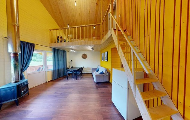 Она имеет невозможно приятную энергетику за счет множества факторов. Сценический вид на горы, озеро, дубовую рощу и небо, закрытость пространства создают отличные возможности для компании от 10 до 50 человек .