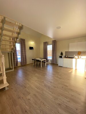 Новейшие коттеджи базы, спрятанные от городского шума и посторонних глаз, оборудованы всем необходимым для комфортного проживания: просторные гостиные, уютные спальни, полностью оборудованные кухонные зоны с посудой и техникой, а также чистые душевые.