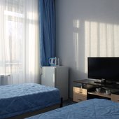 Здравница занимает небольшую озелененную территорию площадью 3,5 гектара, на которой располагается четырехэтажный жилой корпус и спортивный комплекс. Номерной фонд, рассчитанный на единовременное размещение 157 человек, предлагает гостям номера категории «Студия», «Полулюкс» и «Люкс». Все они оснащены ЖК-телевизором, холодильником, ванной комнатой с душем.
