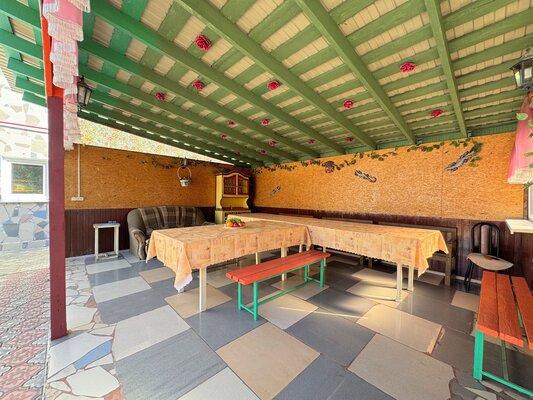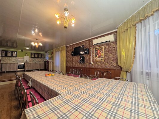 - Wi-Fi, кондиционеры, большой телевизор, музыкальный центр, аэрохоккей, полностью оборудованная кухня (посуда на 30 персон);