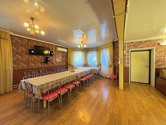- просторный зал (60 м²) на 30 гостей, идеально подходит для праздников и корпоративов;
