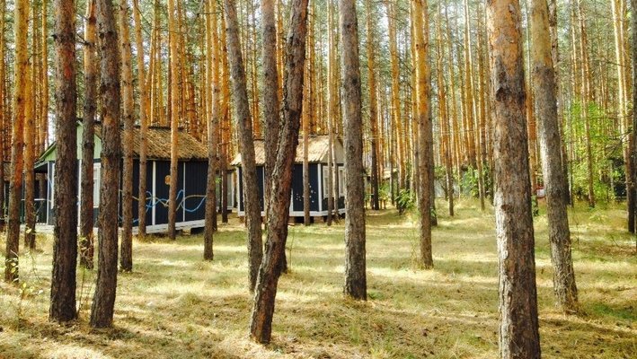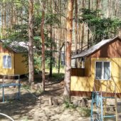 На базе отдыха расположены 80 летних домиков, 3 комфортабельных коттеджа, один из которых идеально подходит для отдыха компанией.