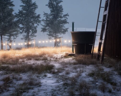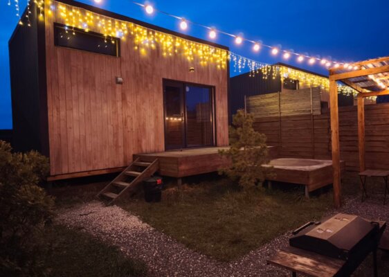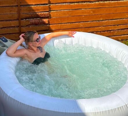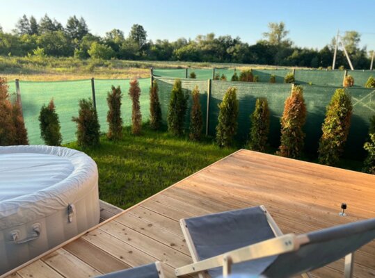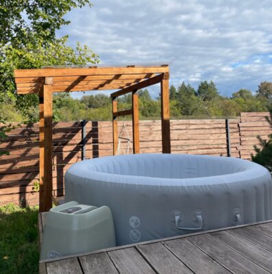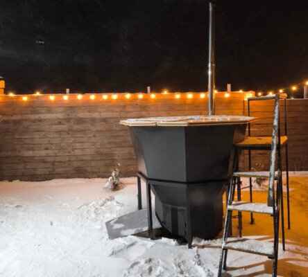 Отдельно стоящий чан под открытым небом. Вместимость — 4 человека. Удобнее всего пользоваться чаном проживающим в домике № 2 (расположен наиболее близко). Домик № 4 находится дальше всех от чана.