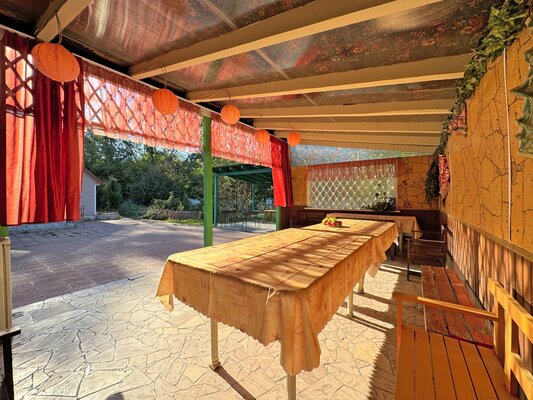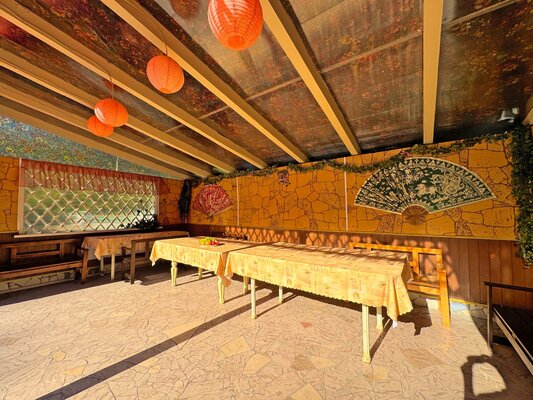 Рядом с домом есть мангальная площадка с освещением. В наличии шампуры, решетки барбекю.