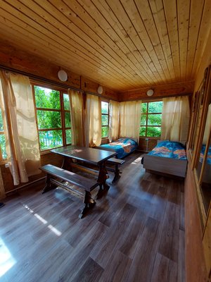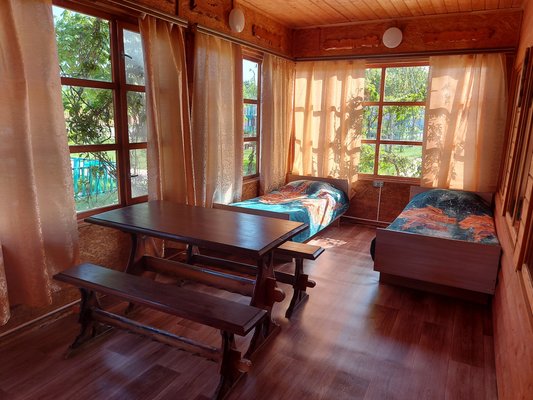 В шаговый доступности (200 метров) благоустроенный песчаный пляж. База находится на мысу, вниз ведут ступеньки к Волге.