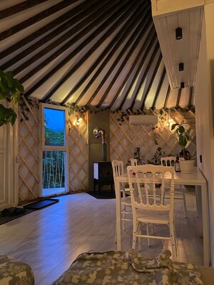 «Бунгало Кемпинг» предлагает уютные A-frame домики и уникальную юрту, расположенные в живописной кленовой роще. Это идеальный выбор для всей семьи.