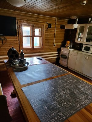 На территории имеется кухня-столовая для самостоятельного приготовления пищи. На кухне имеется все необходимое: плита, холодильник, горячая вода, посуда.