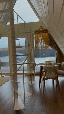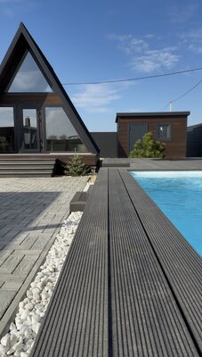На живописном берегу реки, недалеко от села Генеральское (30 минут от Саратова и 20 от Энгельса), расположены уютные А-фрейм дома для отдыха. Они находятся на закрытой территории и предлагают все необходимое для комфортного проживания, включая панорамные окна, парковку на два автомобиля, бассейн с подогревом (до 40°C), русскую баню и зону барбекю.