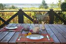 Южный зал рассчитан на 35-40 чел. Стилизован под сельскую таверну, имеет панорамные окна с чудесным видом на Волгу и остров Пустынный с высокого живописного склона.