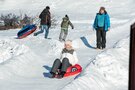 Здесь кататься на тюбинге можно круглый год, так как горка (120 м) — всесезонная и оснащена системой водного орошения. Тюбинговая трасса по вечерам освещена, что позволяет кататься допоздна.
