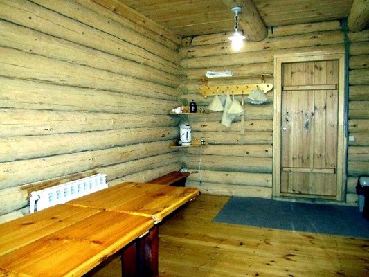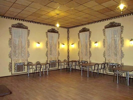 На первом этаже находится кафе. Также есть русская баня на дровах.