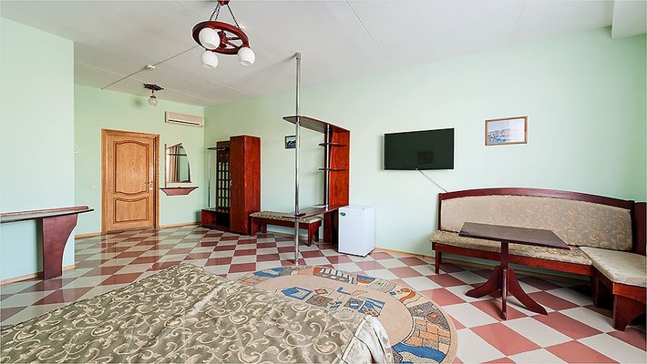 Номера представлены различными категориями - от "Стандартов" до "Люксов". Все комнаты первого этажа имеют индивидуальный выход на набережную. На береговой линии пляжа есть бунгало со всеми удобствами.