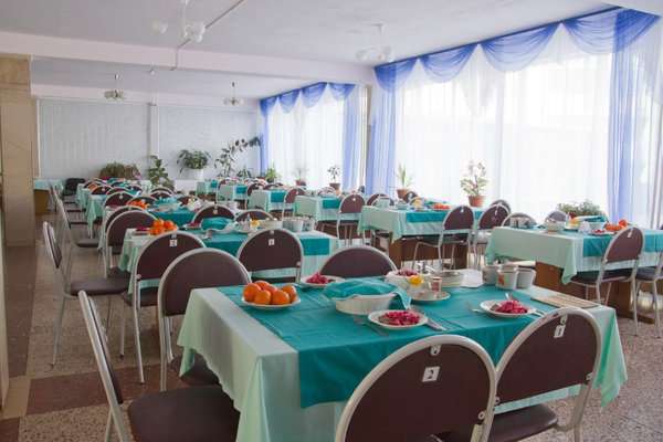 Отдыхающие питаются в двухэтажной столовой, рассчитанной на 500 посадочных мест. Завтраки, обеды и ужины, которыми угощают гостей санатория, способны удовлетворить самого изысканного клиента.